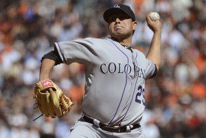 Coming back from tearing his elbow up last May, Rockies ace Jorge De La Rosa made his 2012 debut at home Thursday night against Barry Zito and the NL West leading San Francisco Giants, and it did not go well. Following in the footsteps of Jeremy Guthrie, Jamie Moyer and the rest of the starting rotation, De La Rosa gave up six runs on seven hits (five earned) in less than four innings of work. Disappointed in his performance, De La Rosa knows he has some ground to cover to get back to his level of play where he was hurling dangerous back foot sliders and leading the rotation last season before he blew out his elbow in a May 24 game.
